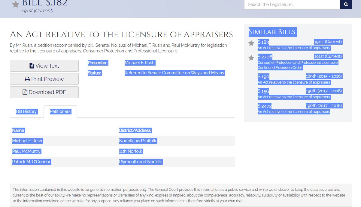 Move The ADALB (Formerly Senate Bill 182) Documents Pertaining To Moving The ADALB – Formerly MA Senate Bill 182 Although the Bill will be renumbered in 2021-2022, ALL the documentation below is accurate and fully relevant. Click Here To Find Your Legislator